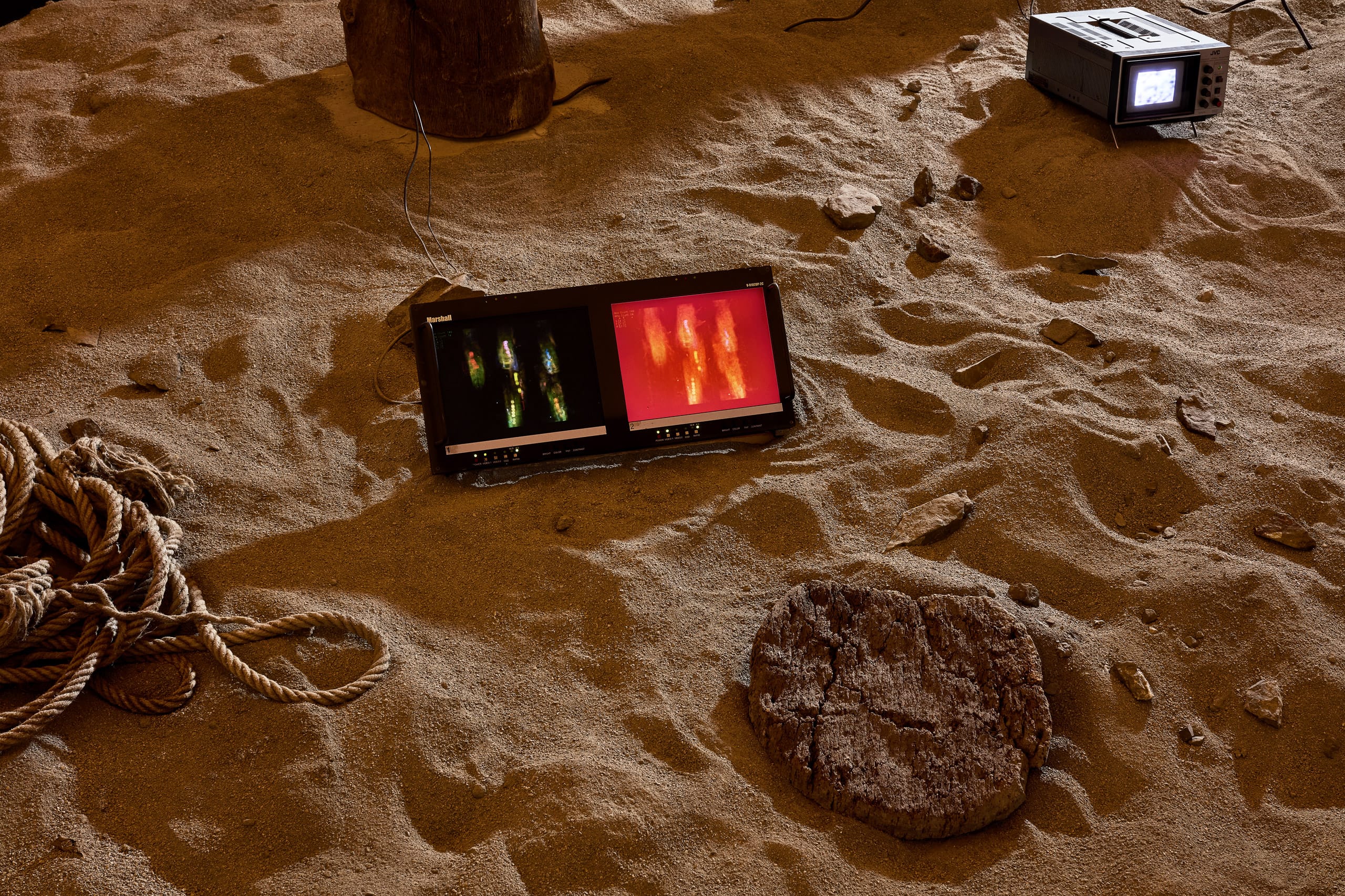 Les courts films prennent place dans différents contextes apicoles sur lesquels les artistes souhaitent attirer l’attention. À travers une chorégraphie minutée, les écrans de la sculpture spéculent et diffusent les valeurs boursières hypothétiques de plusieurs types de ruches, comme une ruche tronc, une ruche moderne et bien d’autres, selon des critères qui échappent aux spectateurices, cela faisant référence au manque de transparence de l’industrie agroalimentaire. Néanmoins, chaque écran affiche des acronymes tels que : BIO (biodiversity), BEE (bees), HON (honey), POL (pollination), etc., donnant des indices sur quoi la machine base son prix. Est-ce le poids ? Le nombre d’abeilles ou encore la valeur de pollinisation ?